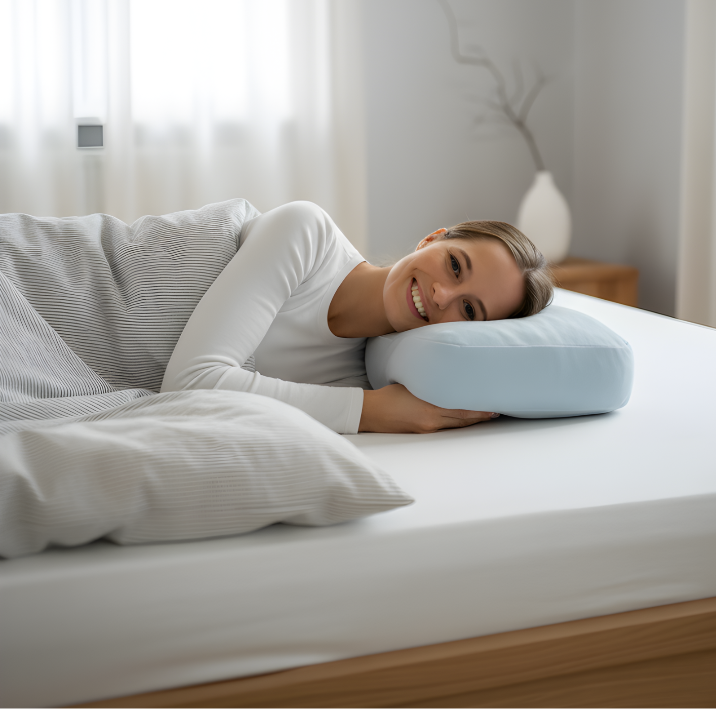 Entwickelt für jede Schlafposition – die ergonomische Form und die Schulterkonturen fördern eine optimale Ausrichtung und maximalen Komfort, egal ob du auf der Seite, dem Bauch oder dem Rücken schläfst.